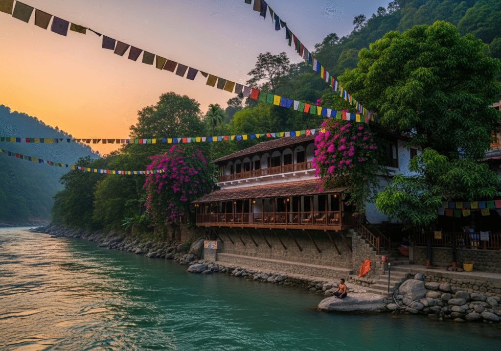 Riverside tranquility along the sacred Ganges, ideal for yoga, meditation, and spiritual rejuvenation